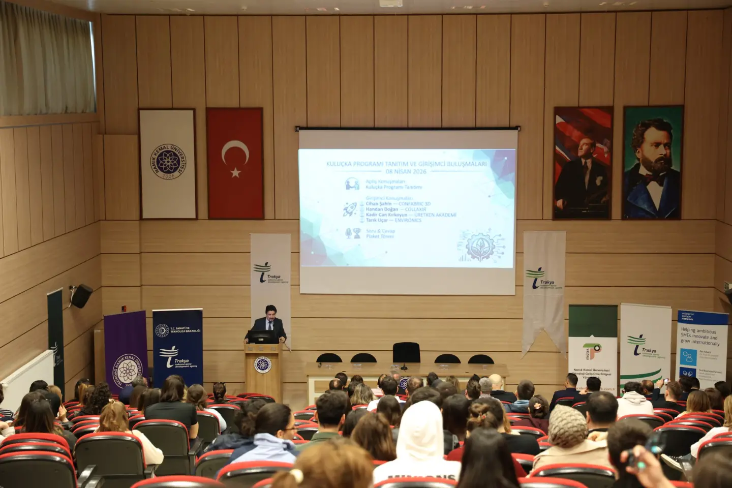 Tekirdağ Namık Kemal Üniversitesi Fen Edebiyat Fakültesi’nde düzenlenen ve girişimci adayları ile öğrencilerin yoğun ilgi gösterdiği etkinlikte, Trakya Kalkınma Ajansı tarafından hayata geçirilmesi planlanan Kuluçka Programı’nın kapsamı, başvuru süreci ve sağlayacağı destekler detaylı şekilde anlatıldı. Programın, iş fikri olan girişimci adaylarının projelerini geliştirmelerine, mentörluk ve eğitim destekleriyle iş dünyasına hazırlanmalarına katkı sunacağı vurgulandı.