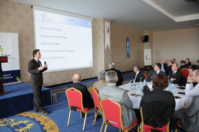 Bu konuşmanın ardından Planlama Birim Başkanı Mehmet Karaman bölgeyi ve potansiyellerini anlatan tanıtıcı bir sunum yaptı. Daha sonra söz alan Planla Birimi Uzmanı Yetki Özer “Bölge Planı nedir? Vizyon ve Değerler Nasıl Belirlenir?” konularına değindi. Özer sunumunda planlamanın ülkemizdeki tarihine vurgu yaptıktan sonra Bölge Planı hazırlıklarının Kalkınma Ajanslarına verilmesi sürecini anlattı. Daha sonra ülkemizde hazırlanan planların hiyerarşisine değinen Özer şunları söyledi:” Bölge Planı tavsiye niteliğinde bir metin değildir. İmar Planları ve Çevre Düzeni Planı üzerindedir ve bunlara yaptırım gücü olan ve bunları doğrudan etkileyen bir plandır. Bölge Planı hazırlanması konusunda ülkemizde son yıllarda meydana gelen zihniyet değişikliği ile birlikte katılımcılık ve yönetişim kavramları önem kazandı. Katılımcılık ilkesinin bir gereği olarak bugün Bölge Planımıza yön verecek vizyon cümlesini belirlemek üzere bir aradayız. Trakya’nın bundan sonraki on yılda nerede olması gerektiğini konuşacağız. Biz bu çalışmayı aslında 1,5 yıldır devam ettiriyoruz. Planın altyapısını oluşturmak üzere farklı çalıştaylar yaptık ve görüşlerinize başvurduk. Çalışmamıza altyapı oluşturması amacıyla yine bazı analizler yaptık ve raporlar hazırladık. Bugün burada belirleyeceğimiz vizyon cümlesi ve önümüzdeki günlerde yapacağımız 16 komisyon toplantısında elde edeceğimiz tüm veriler ile birlikte Bölge Planı Taslağı yazımına geçeceğiz ve oluşacak taslak daha sonra Yönetim Kurulu onayından geçtikten sonra Ankara’ya gidecektir. Burada iki aşamalı bir süreç izlenecek. İlk olarak Bölgesel Gelişme Komitesi’ne gönderilecek olan plan burada bütün bakanlıkların müsteşarlarından oluşan komite tarafından değerlendirilecek. Burada yapılacak değerlendirmeler sırasında ajanslardan bazı düzeltmeler istenecektir. Bu kurulun istediği düzeltmeler yapıldıktan sonra Plan yine aynı kurulun tavsiye raporu ile birlikte Başbakan başkanlığında toplanan ve bakanlardan oluşan Bölgesel Gelişme Yüksek Kurulu’nun önüne gelecektir. Burada plan onaylandıktan sonra yürürlüğe girecektir. Bölgemize yapılacak yatırımlardan başlayarak alınacak kararlara kadar hepsinde Bölge Planı rehber olacaktır. 2014 yılından 2023 yılına kadar Trakya Bölgesi doğasıyla, çevresiyle, insan kaynağıyla, sanayisiyle, sosyal gelişmişliğiyle bu plan çerçevesinde hareket edecektir. “