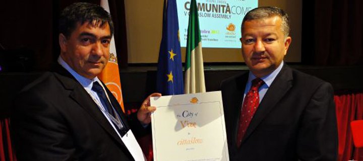 Vize İlçesinin Sakin Şehirler Birliği’ne katılımı, İtalya’da düzenlenen sertifika töreni ile taçlandırıldı. İtalya’nın Novellara kentinde 19-23 Ekim tarihleri arasında gerçekleşen Sakin Şehirler (Cittaslow) Genel Kurulu’na katılan Vize Belediye Başkanı Selçuk Yılmaz’ın, sakin şehir sertifikasını teslim almasıyla birlikte Vize, Türkiye’nin sertifikalı sekiz sakin şehrinden biri oldu.