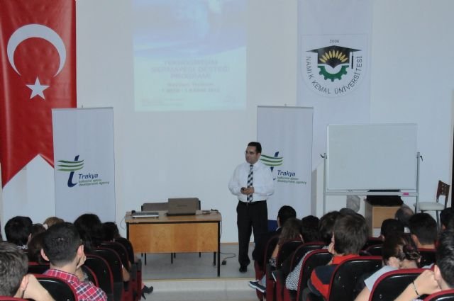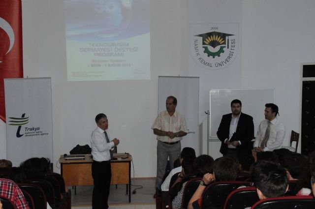 Çorlu Mühendislik Fakültesi Konferans Salonu’nda yapılan toplantıya Çorlu Mühendislik Fakültesi Dekanı Prof.Dr. Özer Göktepe, Namık Kemal Üniversitesi Rektör Danışmanı Prof.Dr. Bülent Eker, Marmara Teknogirişim Derneği Başkanı Ahmet Bilici, Marmara Teknogirişim Derneği Genel Sekreteri Salih Kükrek, Trakya Kalkınma Ajansı temsilcileri, akademisyenler ve öğrenciler katıldı. Toplantıda Marmara Teknogirişim Derneği Genel Sekreteri Salih Kükrek bir sunum gerçekleştirdi ve destek mekanizması hakkında katılımcılara bilgi verdi. Toplantı, katılımcıların yönelttiği soruların cevaplanmasıyla sona erdi. Teknogirişim Sermaye Desteği tanıtım toplantılarının ikincisi 9 Ekim 2012 Salı günü 10.00-13.00 saatleri arasında Kırklareli Üniversitesi Rektörlük Kültür Merkezi Alt salonda yapılacak.
