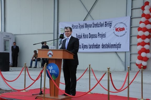 Trakya Kalkınma Ajansı Genel Sekreteri Mehmet Gökay Üstün, Havsa Soğuk Hava Deposu’na sağladıkları destekle ilgili olarak yaptığı konuşmasında mali destek için sunulan projeleri kendilerinin yürütmediğini ve tamamını finanse etmediklerini ancak verdikleri katkı ile projelerin hayata geçmesi için itici bir güç sağladıklarını belirtti. Havsa Meyve Üreticileri Birliği’ne ait proje için sağladıkları 250 bin TL’lik katkının da depo maliyetinin % 25’ine denk geldiğini ifade eden Üstün, bu destek sayesinde soğuk hava deposunun birkaç yıl önce faaliyete geçme imkanı bulduğunu söyledi. Üstün’ün konuşmasının ardından sırasıyla kürsüye gelen Edirne Milletvekilleri Recep Gürkan ve Mehmet Müezzinoğlu da Havsa’da yöre sakinlerinin talepleri doğrultusunda sivil insiyatifin harekete geçmesi neticesinde kamu kaynağının böyle bir projenin hizmetine sunulduğuna işaret ederek bölgenin gıda alanındaki potansiyelinin bu tür yatırımlarla desteklenmesi gerektiğini belirttiler.