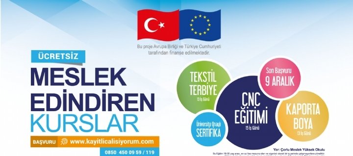 Trakya Kalkınma Ajansı olarak yürütücüsü olduğumuz, AB ve Türkiye Cumhuriyeti tarafından finanse edilen kayıtlı çalışıyorum projesi kapsamında mesleki eğitim verilecektir.