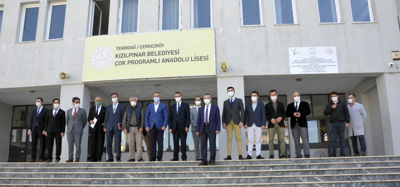 Projenin kapanış toplantısında bir açıklama yapan TRAKYAKA Genel Sekreteri Mahmut Şahin şunları söyledi: “Fabrikalarla okulların bir araya gelmesi, arzla talebin oluşması noktasında hem makine ekipman parkurunu yenileyelim hem de kendi öğretmenlerimizin varsa eğitim ihtiyaçlarını yenileyelim, hem de özel sektörle birlikte hareket edebilme kabiliyeti kazandıralım istedik. Açtığımız Mesleki ve Teknik Eğitimin Geliştirilmesi Mali Destek Programı ile meslek okullarımızın alt yapısını yeniledik, sadece bununla kalmadık gençlerimizin kendilerine kariyer planlaması yapabilmesi için danışmanlık da verdik. Ayrıca program kapsamında destek alan her okulu bir OSB veya TSO veya Küçük Sanayi Sitesi ile ortak yaptık, ayrıca aktif olarak üretim yapan 3 firma ile eşleştirdik. Yani bu firmaları zorunlu iştirakçi yaptık. Burada temel amacımız oturtmaya çalıştığımız meslek okulu, sanayi birlikteliğini oluşturabilmekti. Firmalarımızın geri dönüşlerinden bu konuda başarılı olduğumuz görüyoruz. Projenin gerçekleşmesinde emeği geçen başta Çerkezköy Kaymakamımız Atilla Selami Abban'a, Veliköy OSB Başkanımıza, İlçe Milli Eğitim Müdürlüğümüze, firmalarımıza, Kızılpınar Belediyesi Çok Programlı Anadolu Lisesi Müdür, öğretmen ve öğrencilerine teşekkür ediyorum. İnşallah bundan sonraki projelerde yine aynı şekilde destek vermeye hazır olduğumuzu belirtmek istiyorum.”