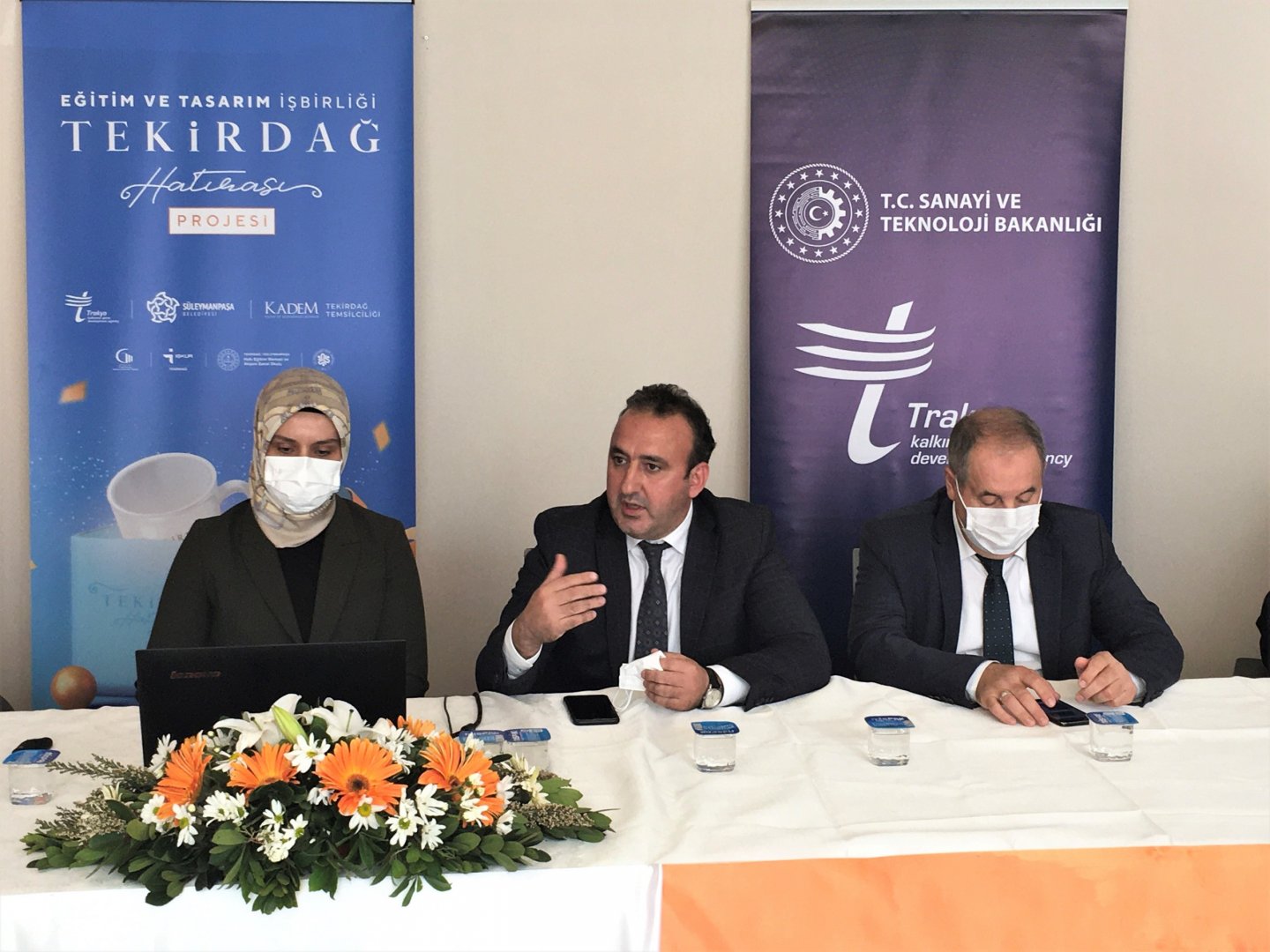 KADEM Tekirdağ temsilciliğinde gerçekleşen toplantıya Namık Kemal Üniversitesi Rektörü Prof. Dr. Mümin Şahin, Süleymanpaşa Belediye Başkanı Cüneyt Yüksel, Trakya Kalkınma Ajansı Genel Sekreteri Mahmut Şahin, Çalışma ve İş Kurumu İl Müdürü Yaşar Esen, Tekirdağ Halk Eğitim Merkezi Müdürü Hüseyin Şahin, KADEM Tekirdağ İl Temsilcisi Zeynep Şentop Şahin, davetliler ve Tekirdağ basını katıldı. Projenin açılış toplantısında bir konuşma yapan Trakya Kalkınma Ajansı Genel Sekreteri Mahmut Şahin şunları söyledi: “ Tekirdağ’a gelen insanımızın eksikliğini hissettiği bir sorunu daha çözüme kavuşturmuş olacağız. Bu proje ile hediyelik eşya konusunda yeni tasarımlar ve yeni fikirler ortaya çıkmış olacak. Gruplar halinde eğitim alacak kadınlarımızdan başarılı işler, çalışmalar bekliyoruz. Destek vermesi bizden, güzel fikirler ve tasarımlar üretmek onlardan. Bu konudaki eksiklikler Trakya’nın diğer il ve ilçelerinde de hissediliyor. Pek yakında Keşan Belediyesi ile de böyle bir projeyi uygulamaya alacağız. Projeyi hazırlayan Süleymanpaşa Belediyesi’ne, projeye can-ı gönülden sahip çıkan KADEM Tekirdağ İl Temsilciliği’ne, İŞKUR İl Müdürlüğümüze, Namık Kemal Üniversitesi’ne, Halk Eğitim Merkezi Müdürlüğü’ne teşekkür ediyorum ve projenin hayırlara vesile olmasını diliyorum.”