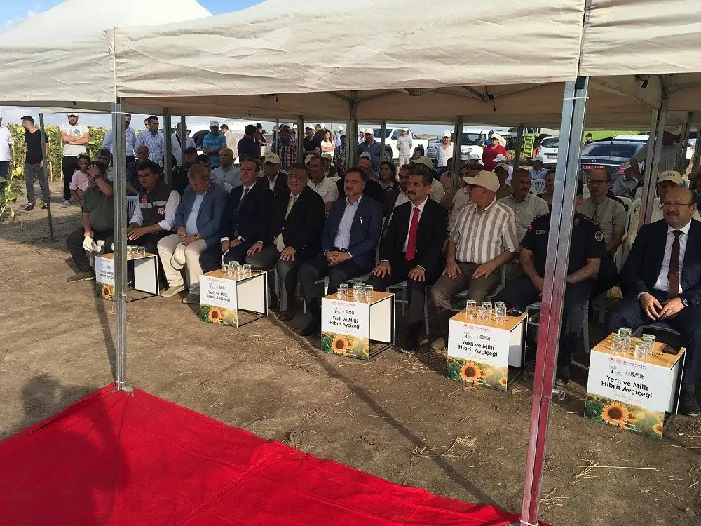 Bugün buradaki toplanmamıza konu olan ayçiçeği tohumu ise, kamu kaynakları ile Trakya Tarımsal Araştırma Enstitüsü’nde Türk mühendisler tarafından geliştirilmiş ve projemiz kapsamında çoğaltılarak ticarileştirilmiş yerli ve milli ar-ge ürünüdür. Bu ürünün çiftçi ile bulaşmasını kolaylaştırmak adına Tarım ve Orman Bakanlığı’nın desteği ve İl Müdürlüklerimizin çalışmaları sonucunda 60.000 dönüm alanda ekilmek üzere 25 ton tohum dağıtımı gerçekleştirdik. Önümüzdeki yıl bu miktarı 60 tona çıkarmayı hedefliyoruz.