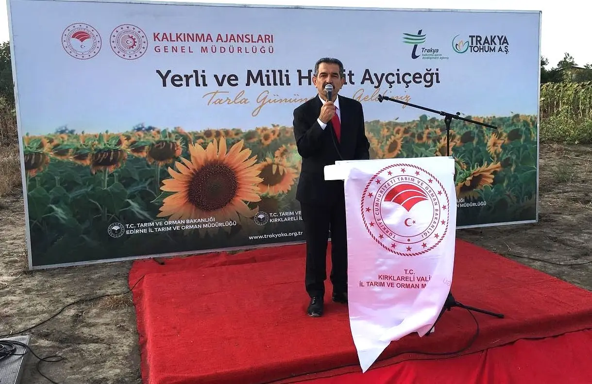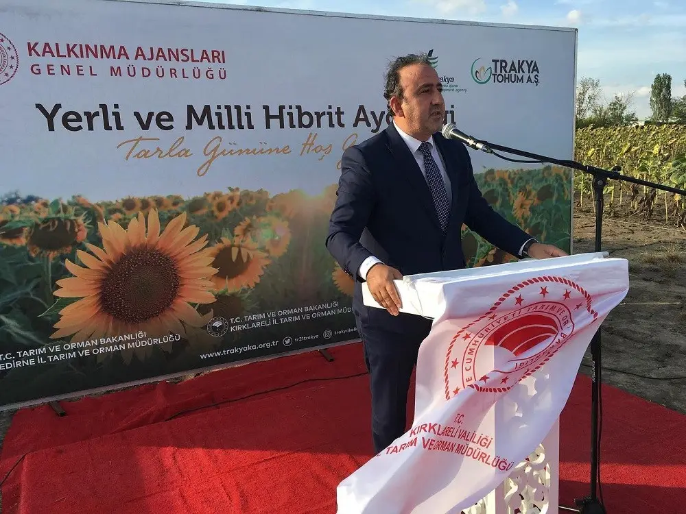 Etkinlikte bir konuşma yapan Trakya Kalkınma Ajansı Genel Sekreteri Mahmut Şahin kısaca yerli ve milli hibrit ayçiçeği üretim sürecini anlattı. Şahin şunları söyledi:” Bugün burada 2018 yılından beri yürüttüğümüz bir tohumculuk programımızın çıktıları için bir araya geldik. Tohumculuk sektörünün stratejik olarak önemi, bölgemizin tarım kimliği ve tohumculuk şirketlerimizin yeniliğe ve işbirliğine açık yapısını dikkate alarak sektörün gelişimine yönelik bir program kurguladık. Geçtiğimiz 5 yıl boyunca sektör paydaşlarımızı çeşitli program ve faaliyetler ile destekledik.